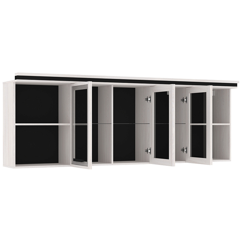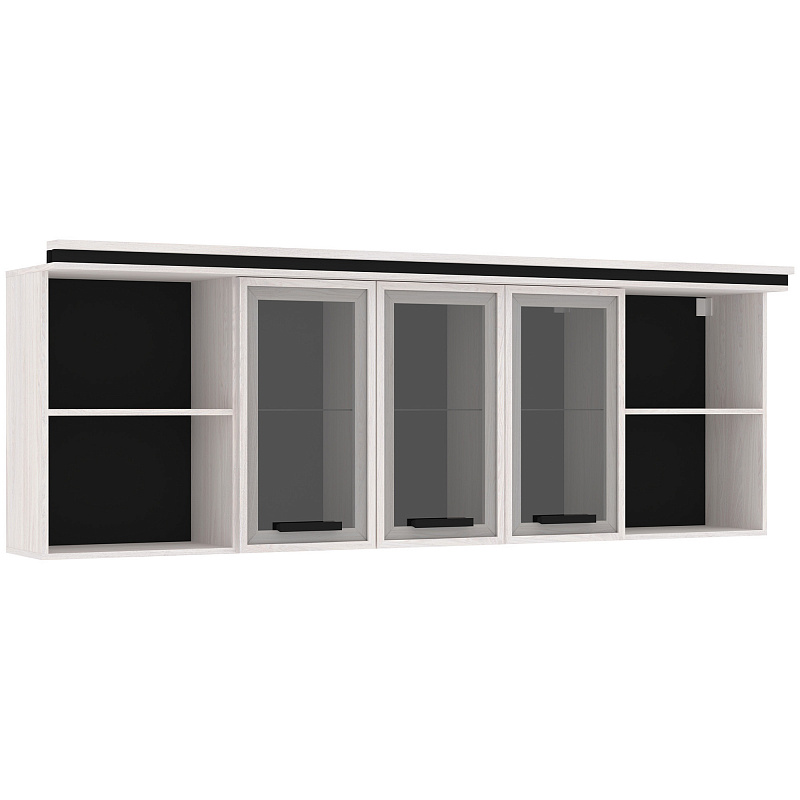 Организовать хранение в комнате подростка поможет вместительный навесной шкаф NATURE (НАТУРА) 81. Навесной шкафчик шириной 2241 мм с двумя открытыми отделениями и тремя за стеклянными тонированными фасадами. Стеклянные полки выдерживают до 2 кг каждая. Шкаф декорирован составным карнизом в стилистике всей молодежной коллекции NATURE (НАТУРА).