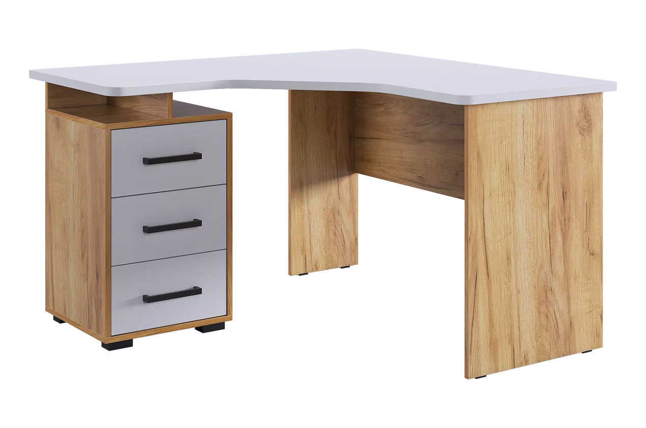 Угловой компьютерный стол «Лайт-2» может быть дополнен функциональной надстройкой или стеллажом той же серии. Главными особенностями данного стола являются радиусные элементы и утолщенная столешница – 22 мм, а также возможность собрать тумбу в одном из двух предусмотренных положений – прямом или диагональном. Сочетание удобства, лаконичности и простоты – идеальное решение для Вашего рабочего места.Характеристики:
