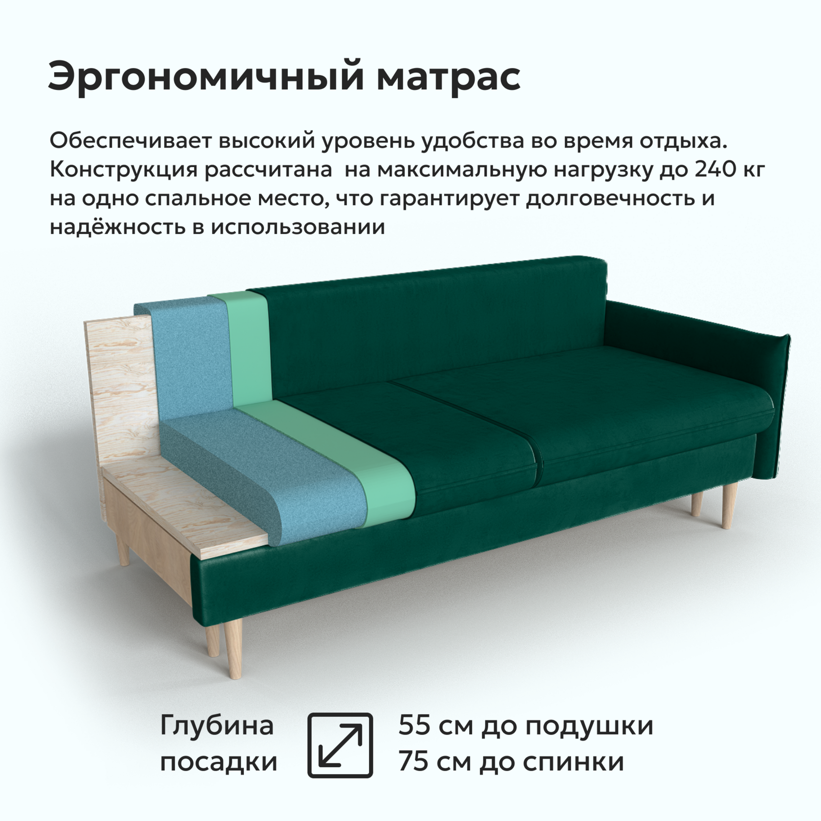 Состав: Брус фанерный, фанера листовая, МДФ ППУ различной плотности, HollowSoft 200 Наполнение подушек синтепух. Опоры - береза.Дополнительно можем установить независимый пружинный блок.