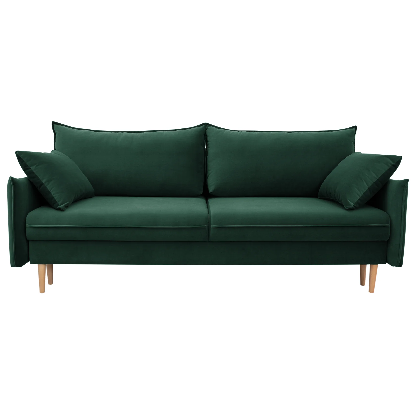 Диван-кровать Фьорд — один из классических представителей скандинавского стиля. Он минималистичен и привлекателен. Аккуратные строчки, ножки из натурального массива березы и нежная велюровая обивка — продумана каждая деталь.