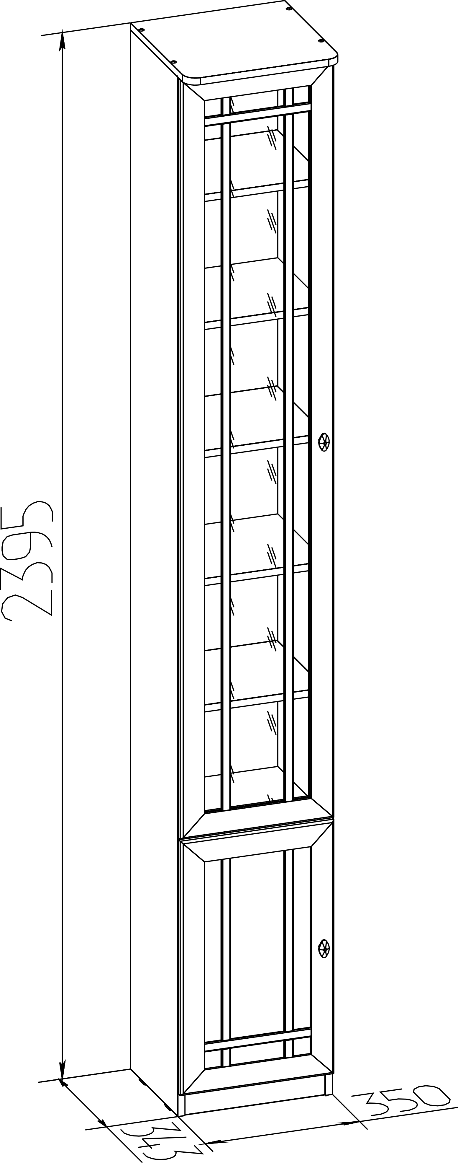 Высокий книжный шкаф можно установить в комнату с высотой потолка не менее 240 см. Высота полок во всех шкафах для книг регулируется, для этого только необходимо установить полкодержатели в подготовленные отверстия. Это позволит поставить на полки книги и альбомы разного формата. Тонированное стекло защищает книги от вредного воздействия солнечных лучей и убережет их от пожелтения.  Книжный шкаф обязательно крепится к стене за подвесы и межсекционной стяжкой с другими шкафами в наборе. Библиотека выпускается без выборки под плинтус, чтобы каждый мог прирезать плинтус индивидуально. В противном случае остаются неаккуратные зазоры между модулем и стеной.