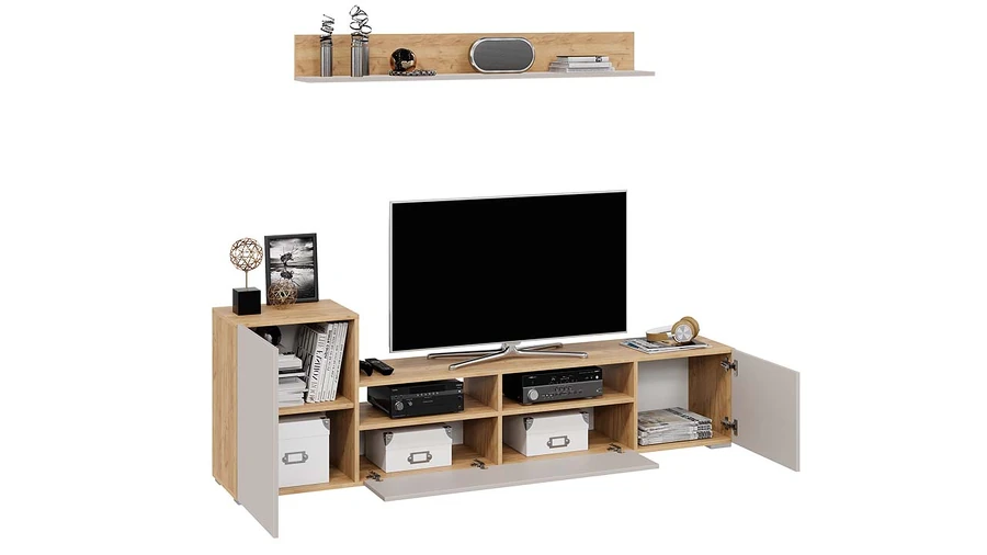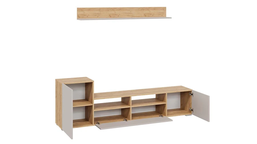 Модульность. Данная модель весьма вместительна, ведь при помощи разработанной комбинации закрытых напольных секций и навесной полки создается идеальная система для хранения различных предметов, которые используются в повседневной жизни. Она выполняет свои функции, а места занимает меньше. В результате драгоценное пространство останется нетронутым.
