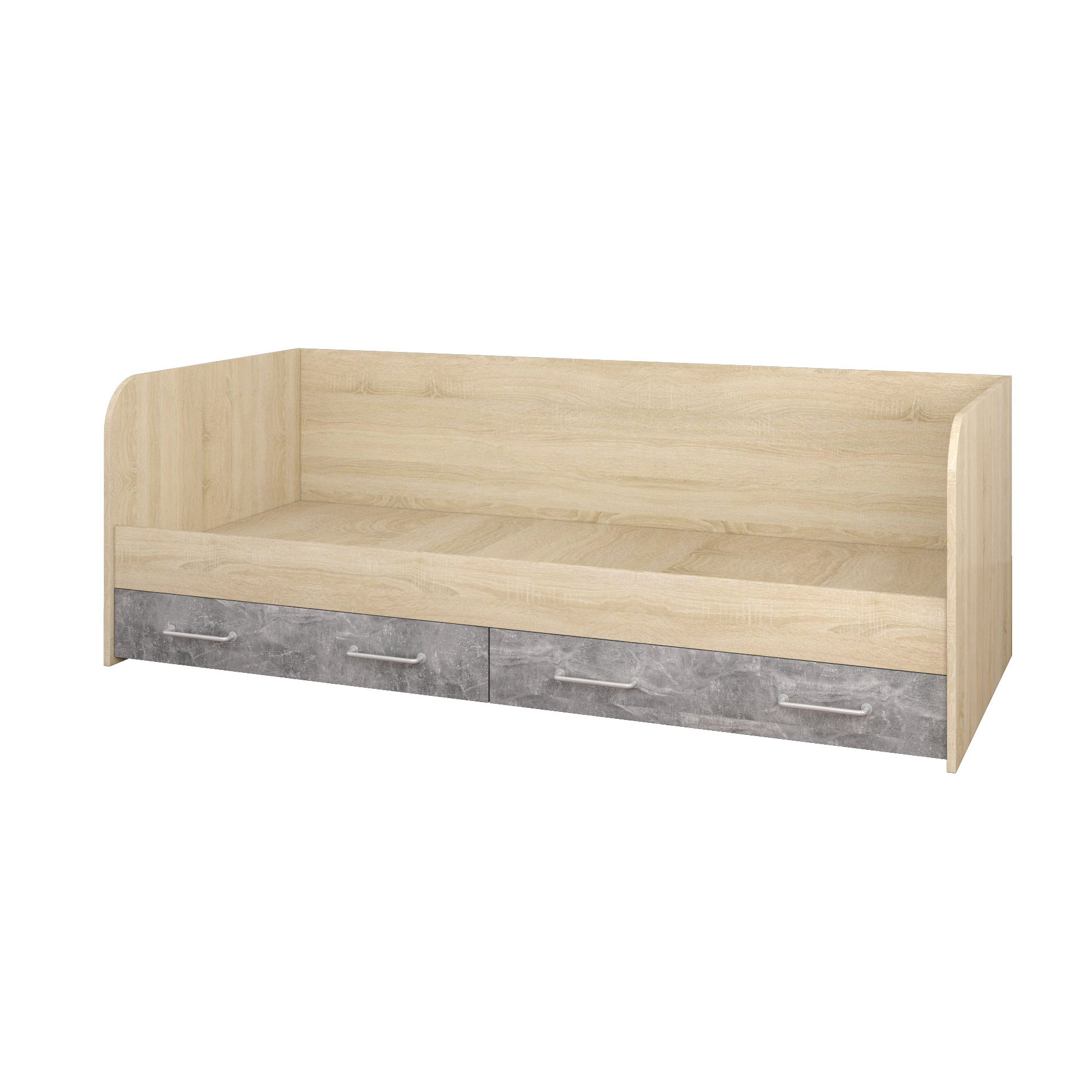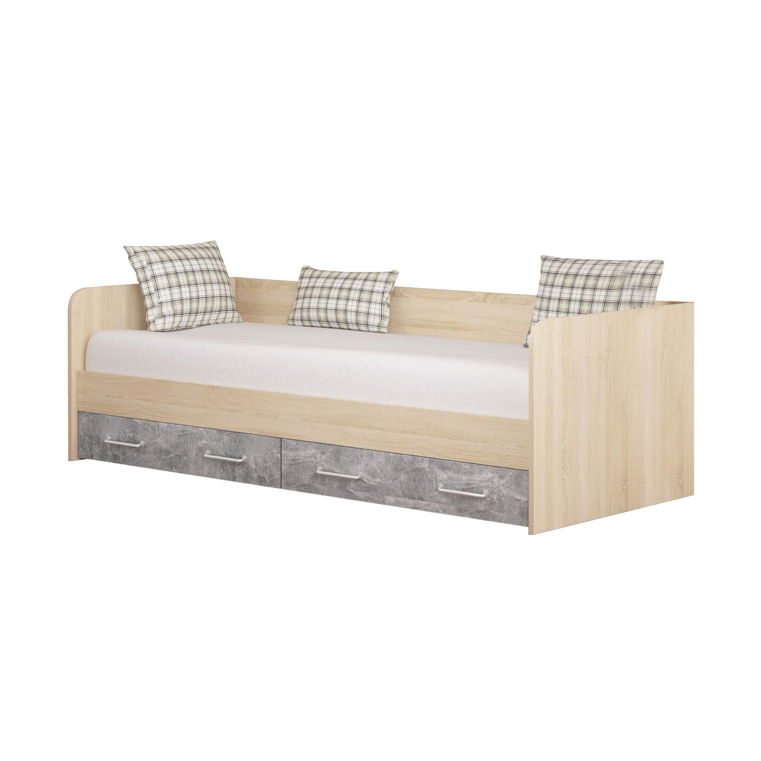 Уютная и невероятно функциональная кровать с ящиками КОЛИБРИ (дуб сонома / ателье светлый) — это идеальное решение для создания комфортной зоны отдыха и системы хранения в современной детской или подростковой комнате, оформленной в стиле лофт, сканди или минимализм. Модель является важным элементом модульной детской «КОЛИБРИ», что позволяет легко комбинировать её с другими модулями коллекции для создания гармоничного интерьера. Выполненная из качественного ЛДСП в теплом древесном оттенке с урбанистичными вставками, эта односпальная кровать 80 см с выкатными ящиками станет эстетичным и практичным акцентом комнаты. При оптимальных габаритах (ширина 862 мм, высота 650 мм, глубина 1892 мм) изделие обеспечивает полноценное спальное место 1860х800 мм с надежным настилом из ЛДСП, а наличие двух вместительных выкатных секций позволяет удобно хранить постельное белье или игрушки. Если вы планируете купить детскую кровать из ЛДСП 186 см, данная модель станет абсолютно лучшим выбором, тем более что её можно доукомплектовать мягкой спинкой СП-16 в велюре «карамель» для создания еще более уютной атмосферы. Это стильное спальное место для школьника с ящиками гарантирует долговечность и порядок
