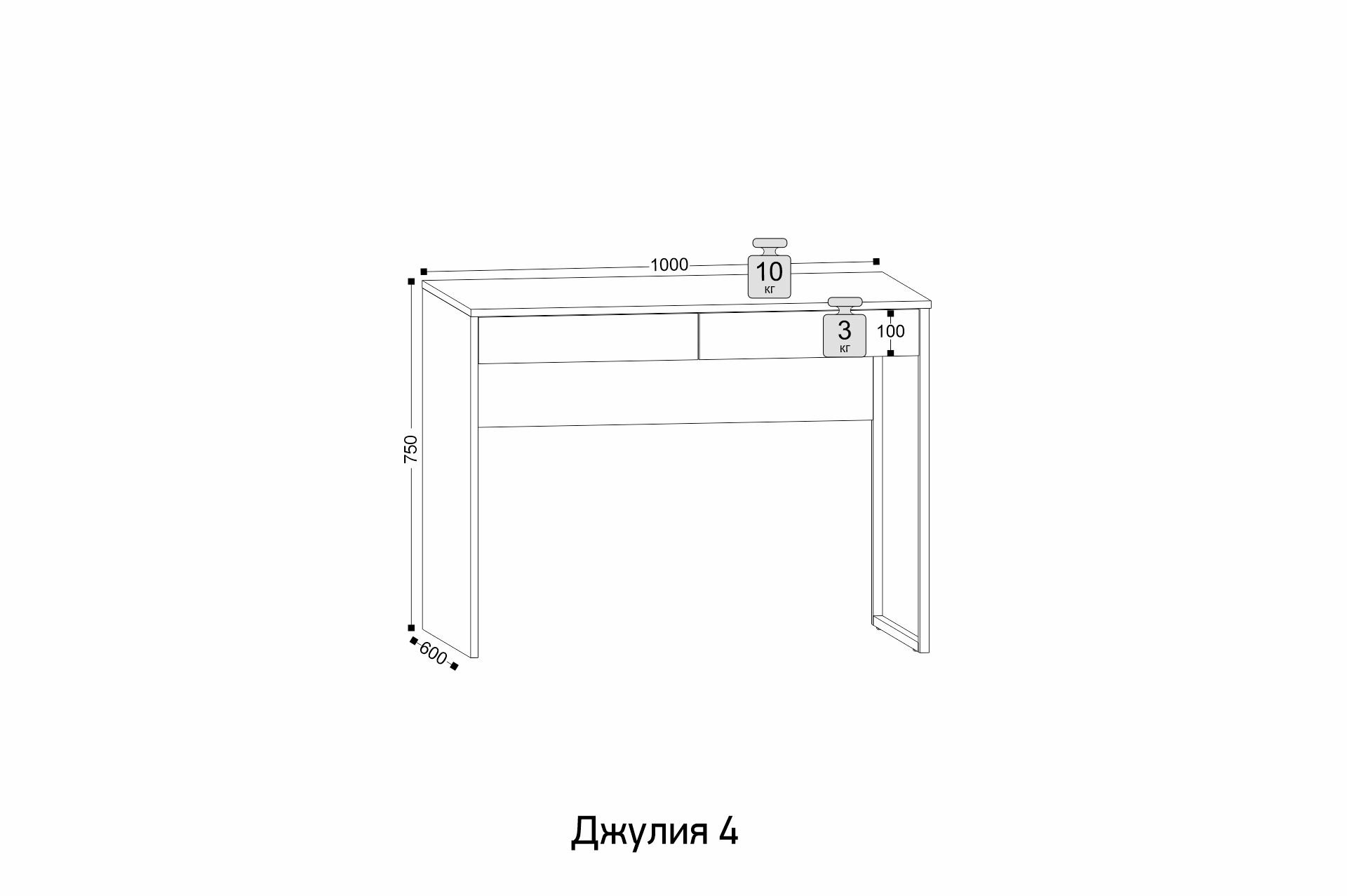 Ширина: 1000 мм | Глубина: 600 мм | Высота: 750 мм