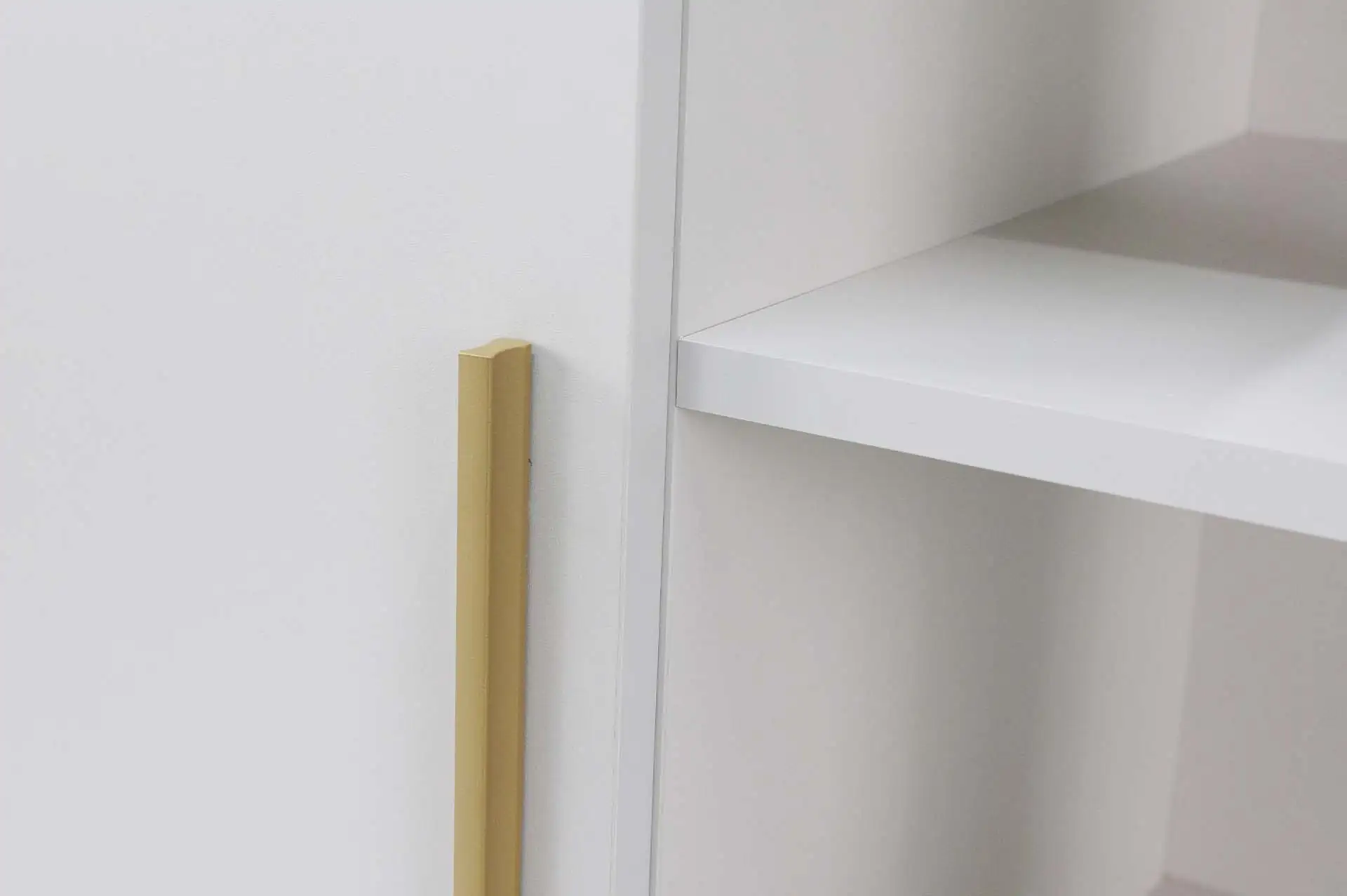 Стеллаж предназначен для хранения различных принадлежностей. Состоит из многоярусных полок и позволяет элегантно и функционально организовать пространство. На выбор представлены два цвета ручек: черный матовый и сатиновое золото.