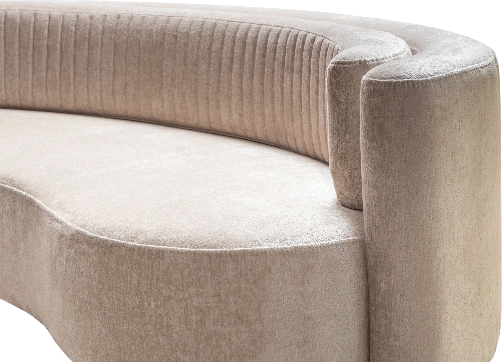 Диван Нэнси стоит на высоких черных ножках, которые не только добавляют ему легкости, но и подчеркивают его изысканный дизайн. Красивое лекало обивки создает эффектный акцент, привнося в пространство нотки шарма и индивидуальности.