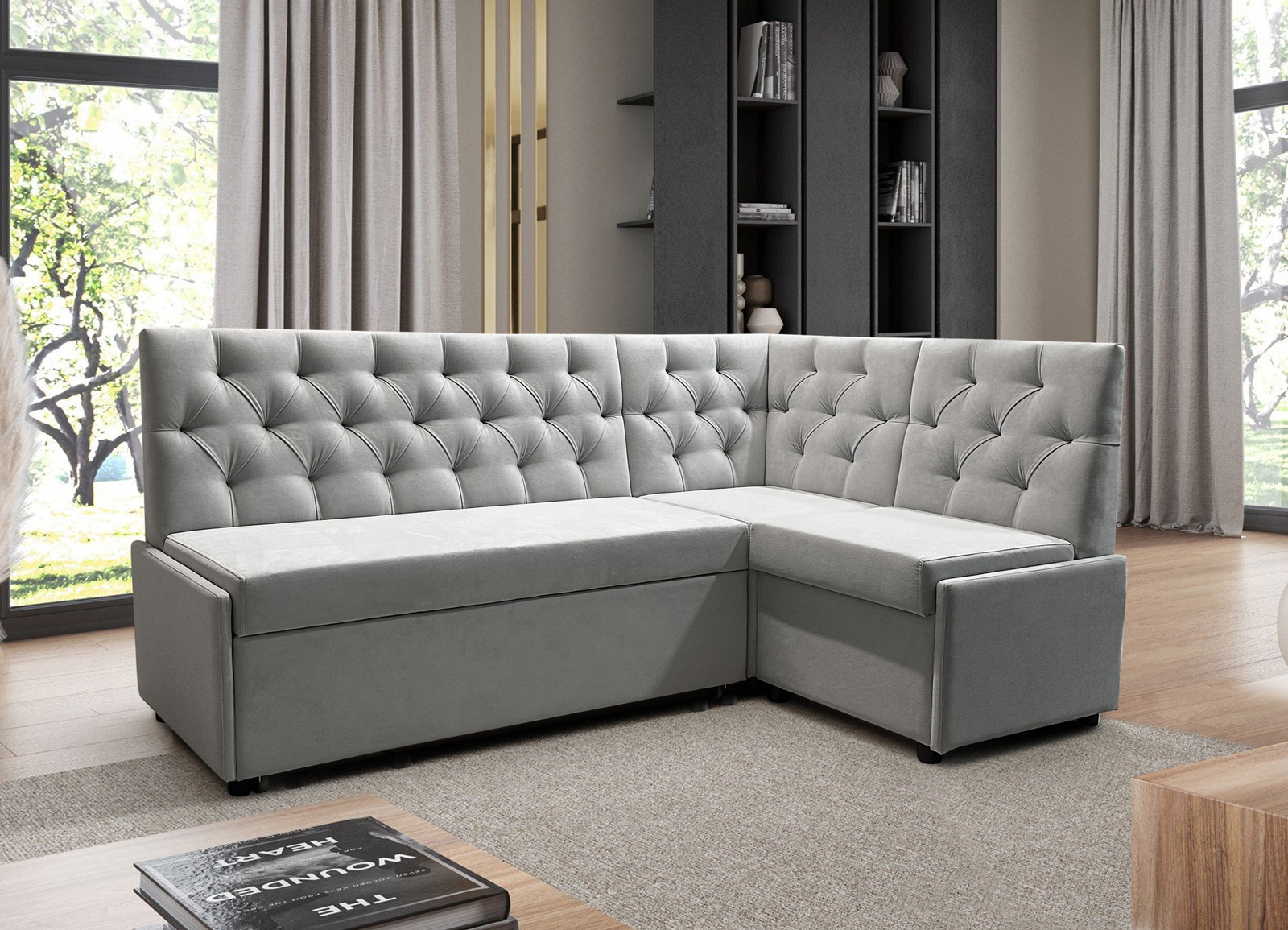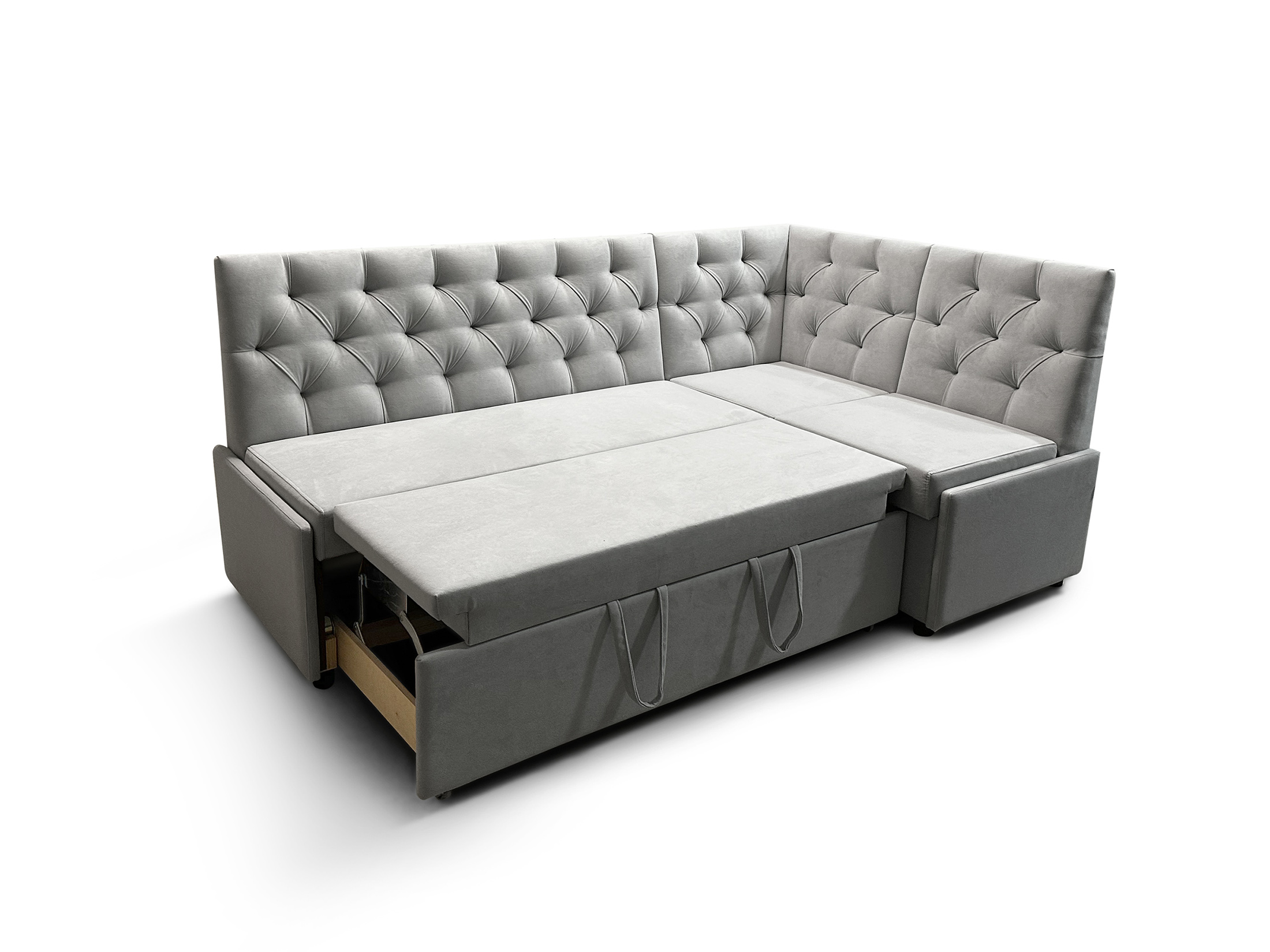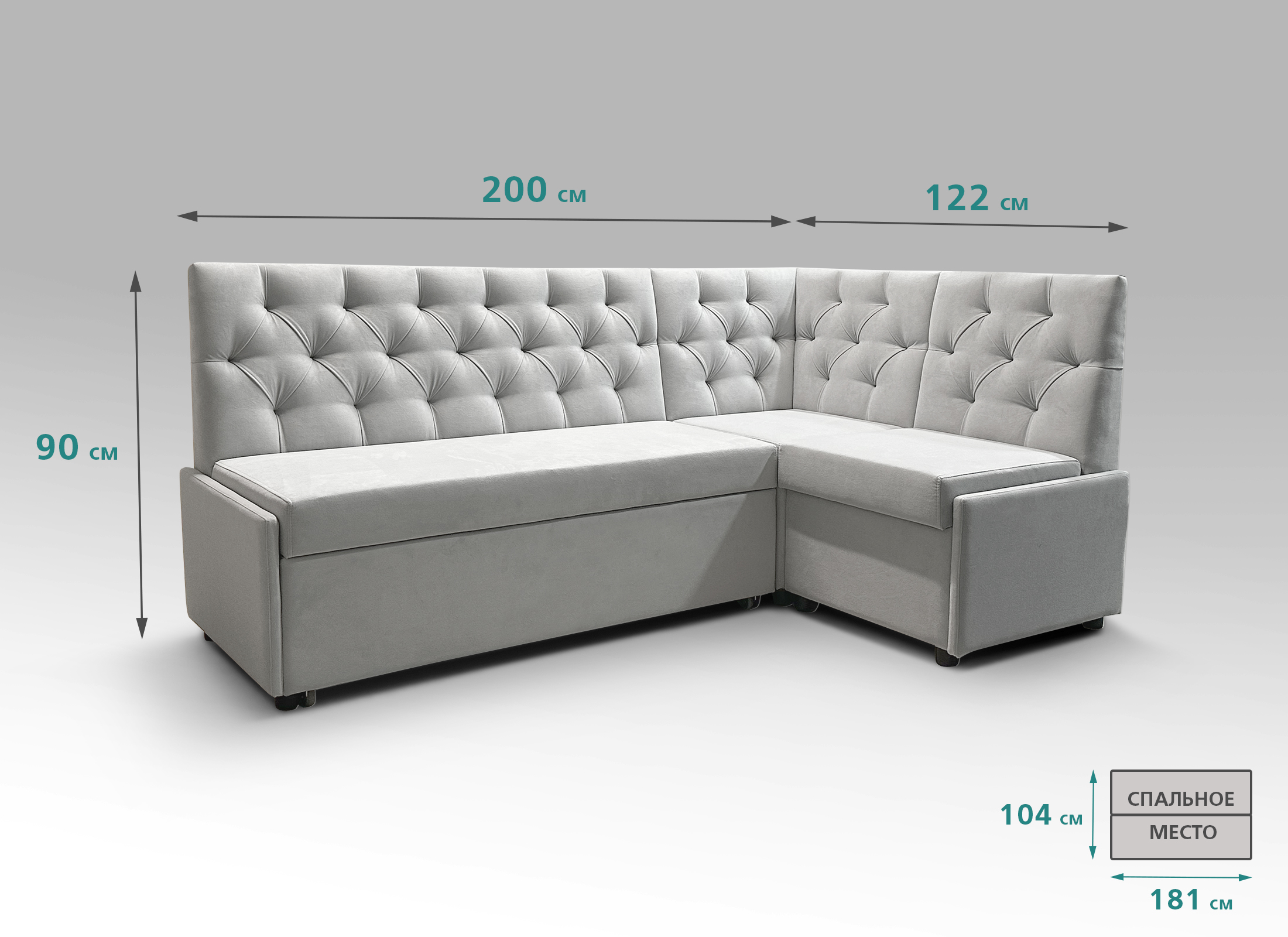 Описание: Модульная мебель предназначена для кухонных помещений. Стандартная комплектация является универсальной и может собираться в домашних условиях, на любую сторону, без применения инструментов. Ящик для хранения вещей. Раскладывается в спальное место, где обивка выполнена из основной ткани.