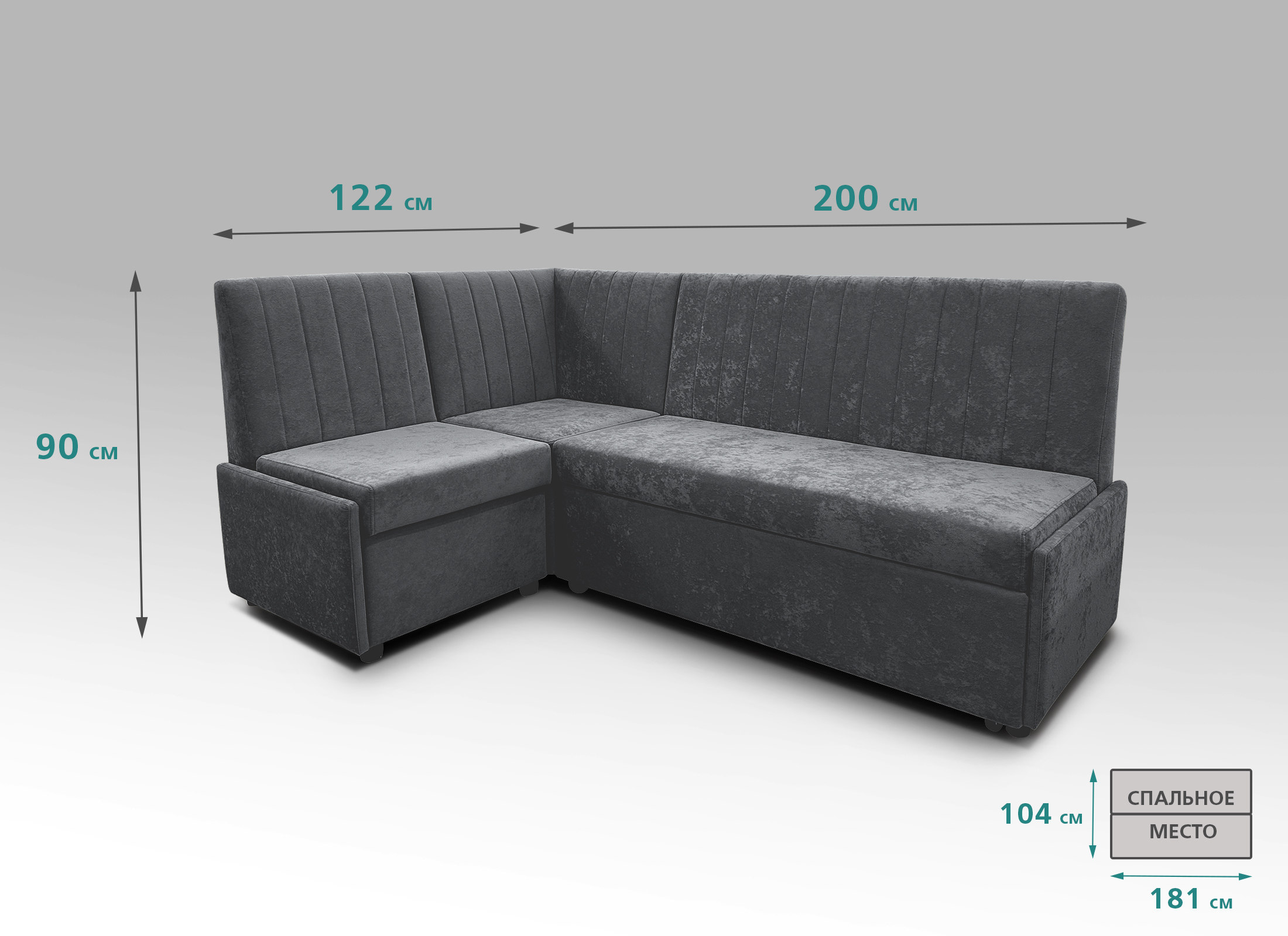 Описание: Модульная мебель предназначена для кухонных помещений. Стандартная комплектация является универсальной и может собираться в домашних условиях, на любую сторону, без применения инструментов. Ящик для хранения вещей. Раскладывается в спальное место, где обивка выполнена из основной ткани. Полка ЛДСП.