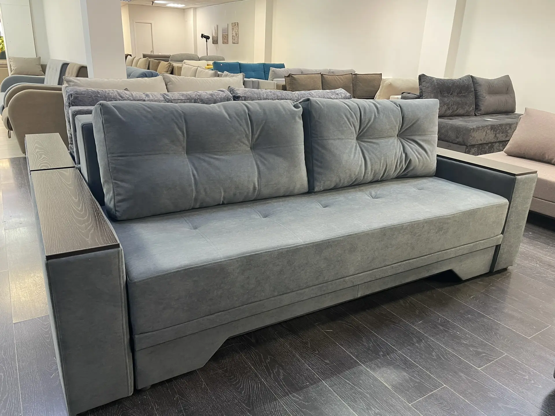 Мы поможем с подбором, подробно расскажем об интересующих вас моделях, покажем изделие и образцы материалов вживую, наглядно продемонстрируем работу мебельных механизмов, качество сборки, фактуру ткани.