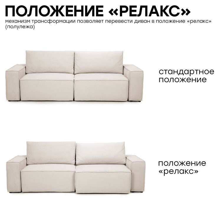 В конструкции прочный металлический каркас HEAVY METAL с повышенной гарантией 67 месяцев. Дополнительное положение RELAX позволяет телу максимально расслабиться, а наклон увеличивает глубину сиденья на 30%. Механизм «еврокнижка» превращает диван в кровать без особых усилий. Ортопедическое наполнениеAURORA FORM + идеально подходит для ежедневного сна. Ниши для хранения расположены под посадочным местом.